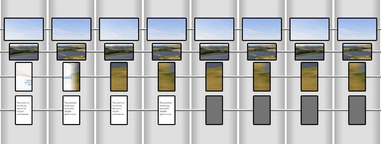 Für die Installation mit 32 synchronen Full HD-Displays musste eine präzise Prävisualisierung erzeugt werden. Nur so war die Produktion des Video-Materials möglich und gleichzeitig stand zu jedem Zeitpunkt eine 3D- Ansicht für Feedback-Schleifen zur Verfügung.